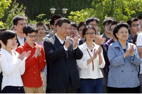 习近平总书记在校园观看北大师生纪念五四运动95周年青春诗会。(新华社记者 鞠鹏 摄)