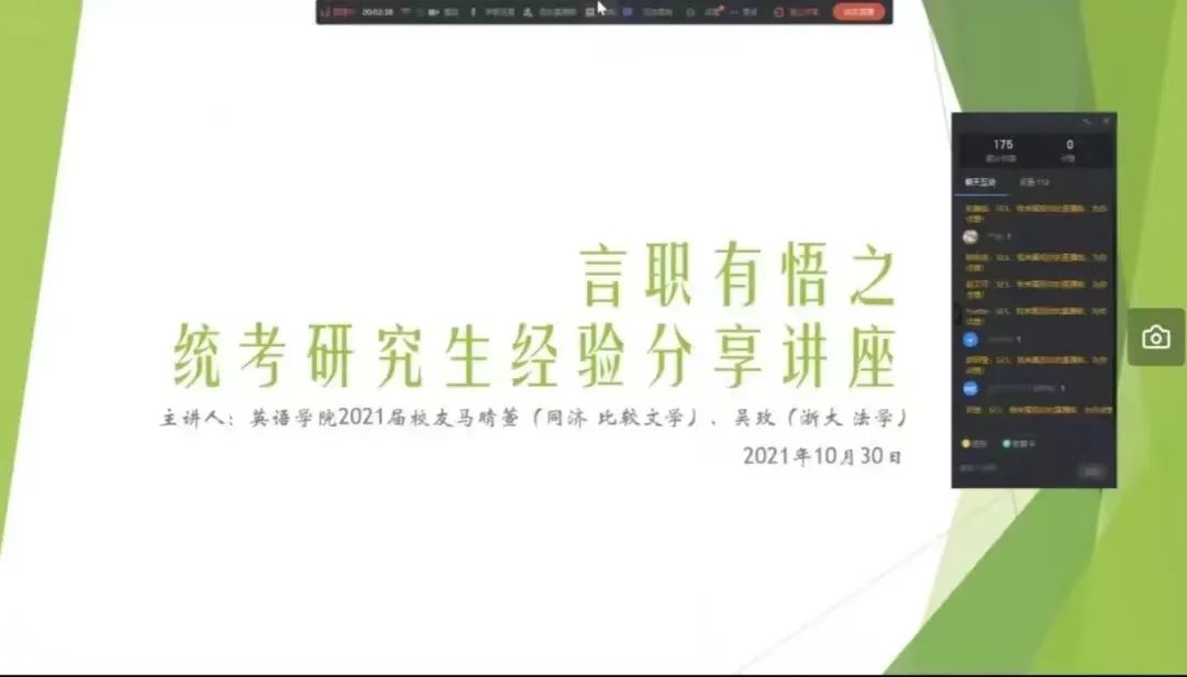 本学年团委、学生会协助举办了言职有悟系列讲座10场,通过生涯规划、教师素养、面试技巧、国际学校就业分析、人才培养等不同领域的内容分享,帮助同学们更好地认识当下的就业环境,找到自己的职业兴趣和职业规划。
