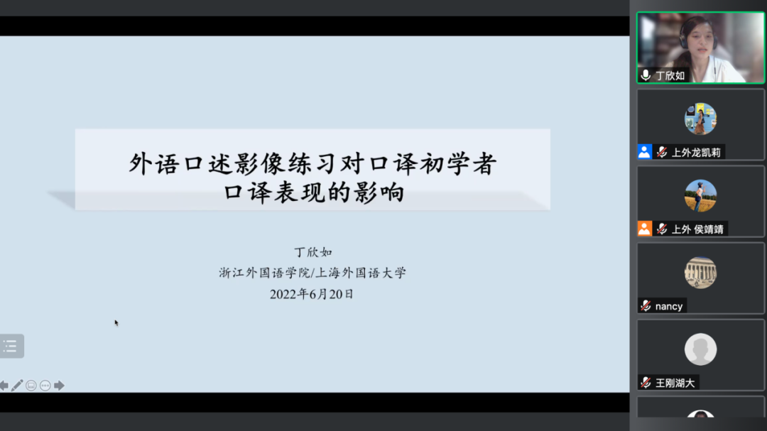 6月20日晚,口译研究沙龙系列讲座(2022年第4期)于腾讯会议平台顺利进行。本期沙龙主讲人为浙江外国语学院英语语言文化学院翻译系系主任丁欣如老师,逾60位师生参与了本期沙龙活动。