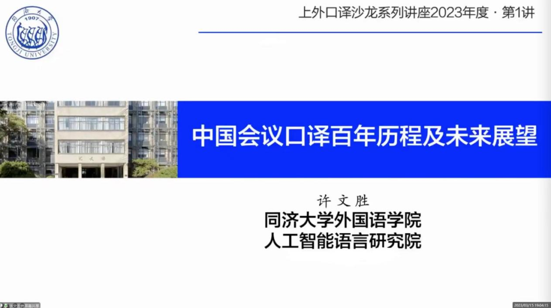 3月15日,口译研究沙龙系列讲座(2023年第1期)在腾讯会议平台顺利进行。本期沙龙主讲人为同济大学外国语学院博导许文胜教授,近150位师生参与了本期沙龙活动。