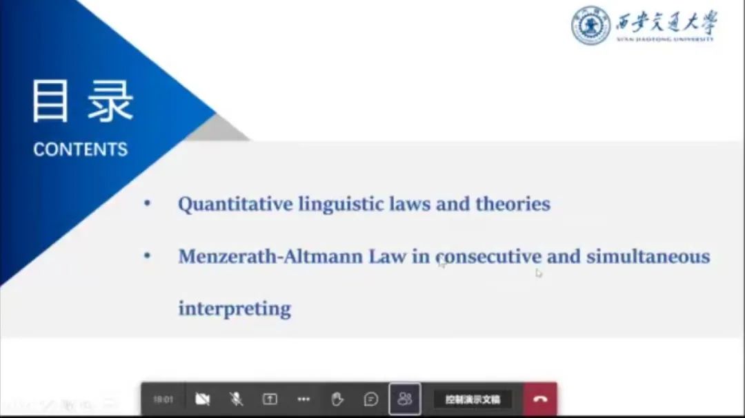 在互动交流环节,蒋新蕾博士耐心解答听众疑惑,包括该项研究在教学中的应用、与前人研究的差异、计量语言学与翻译研究相结合的可能研究方向等问题。蒋博士特别指出,未来开展更多实验研究对现有语料库研究结果进行交叉验证具有重要意义。同时,要遵循Altmann教授所言,在不同边界条件下(boundary conditions)验证MAL,如不同的翻译语对等。
