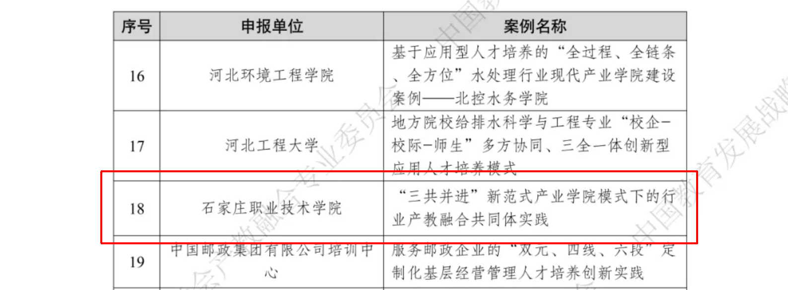 近日,我院建筑工程系案例入选中国教育发展战略学会《2023-2024产教融合校企合作典型案例名单》。