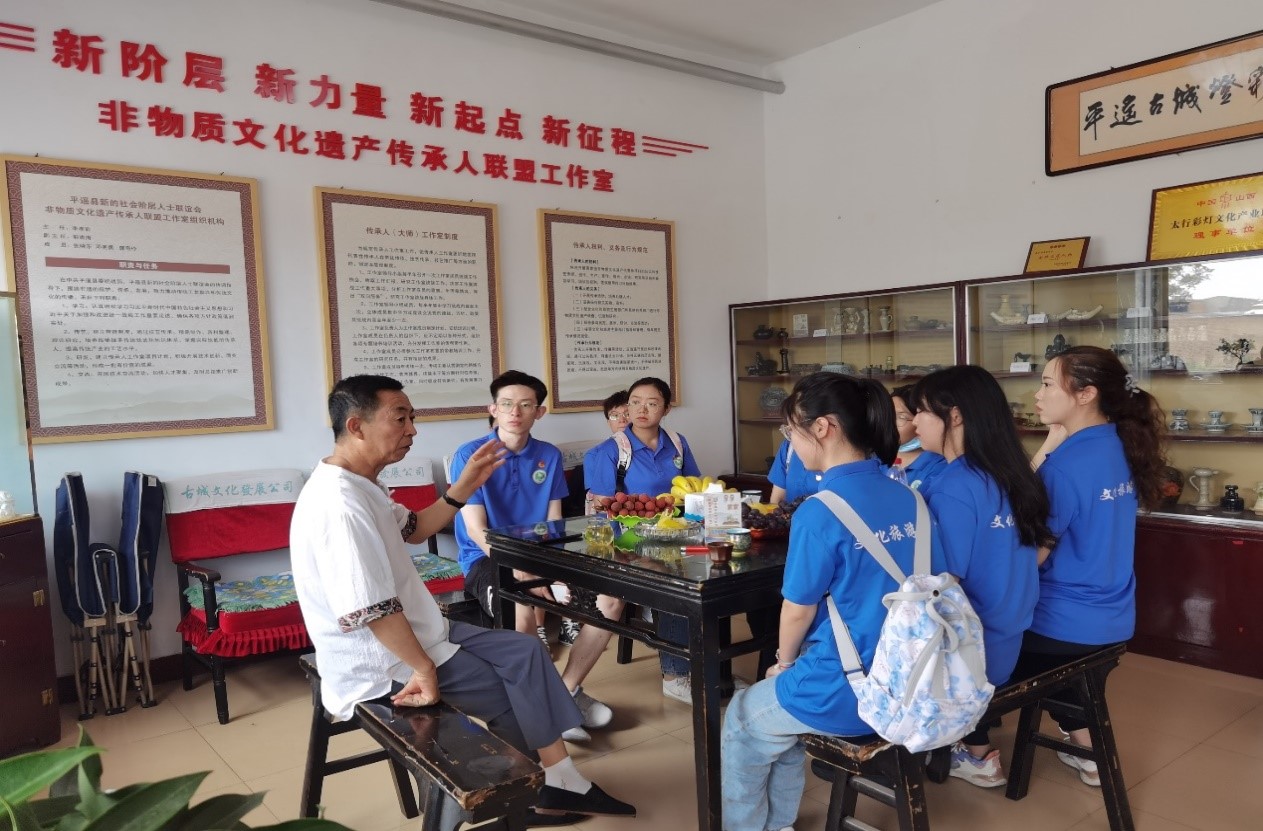 文化旅游学院团委组织主线团队前往平遥、交城两地开展“非遗传承”实践活动,实践队员重点走访了平遥古城灯彩艺术馆、推光漆艺术文化产业创意园、金银器传承人工作室、平遥非遗展览馆、交城堆绫艺术传习所等地,并在“平遥古城灯彩艺术馆”挂牌实践教学基地,聘请其传承人李孝前为校外实践导师,达成校企合作,为进一步推动非物质文化遗产在青年群体中的保护和传承奠定基础。