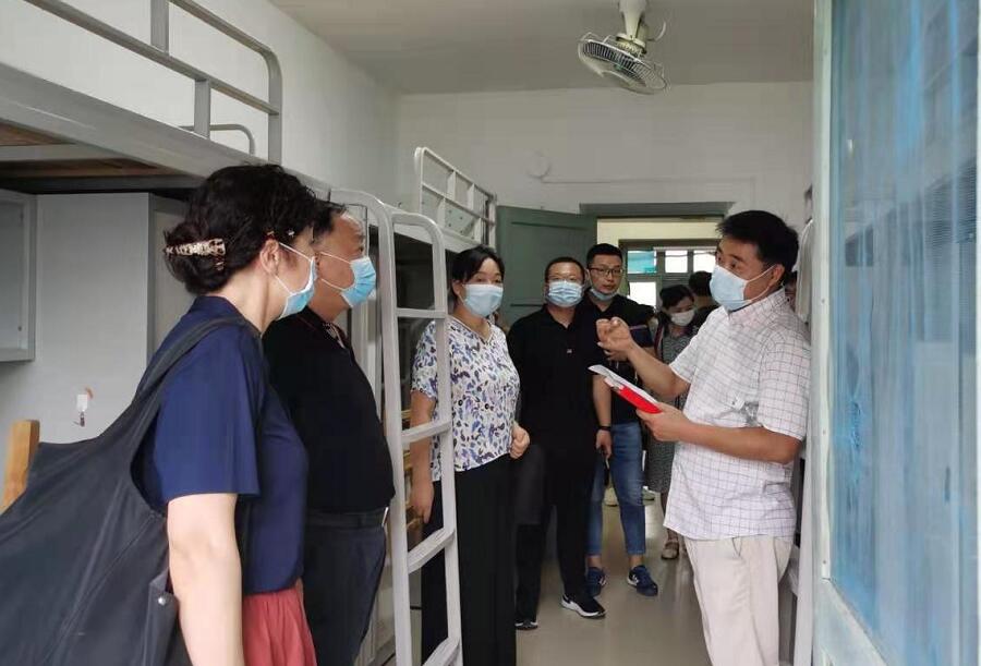 王炎廷一行赴南片校区检查了中区食堂升级改造情况,查看了老旧小区改造工作现场。回到主校区,检查组一行来到欣苑,深入到食堂和公寓,仔细听取了部门负责人的工作汇报,认真查看了合作食堂改造进度及竣工情况,详细了解了学生公寓维修改造情况。
