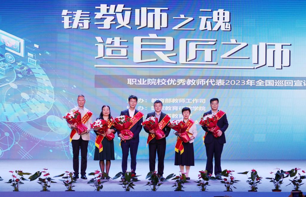 教育部教师工作司翁波同志表示,教育部认真贯彻落实党中央对教师队伍和职业教育的重大决策,推进职业教育提质培优、增值赋能,引领广大教师把大有作为的殷切期盼转化为大有可为的生动实践。经过不懈努力,职教教师队伍建设取得了长足发展——治理体系基本确立,队伍结构不断优化,专业发展成效显著,校企双向流动更加通畅,先进典型层出不穷。下一步,要顺应新时代高质量发展的需要和职业教育教师队伍类型化发展的需要,进一步强化职业教育教师队伍的关键基础作用,推进职普融通、产教融合、科教融汇,为加快构建现代职业教育体系、建设教育强国培养更多高素质技术技能人才,提供坚强师资保障。希望本次职业院校优秀教师代表巡回宣讲活动,能够以点带面、各省推动、校校开花、形成气候,营造全社会关心关注职教教师队伍的良好氛围,在全社会掀起劳动光荣、技能宝贵、创造伟大的时代风尚。