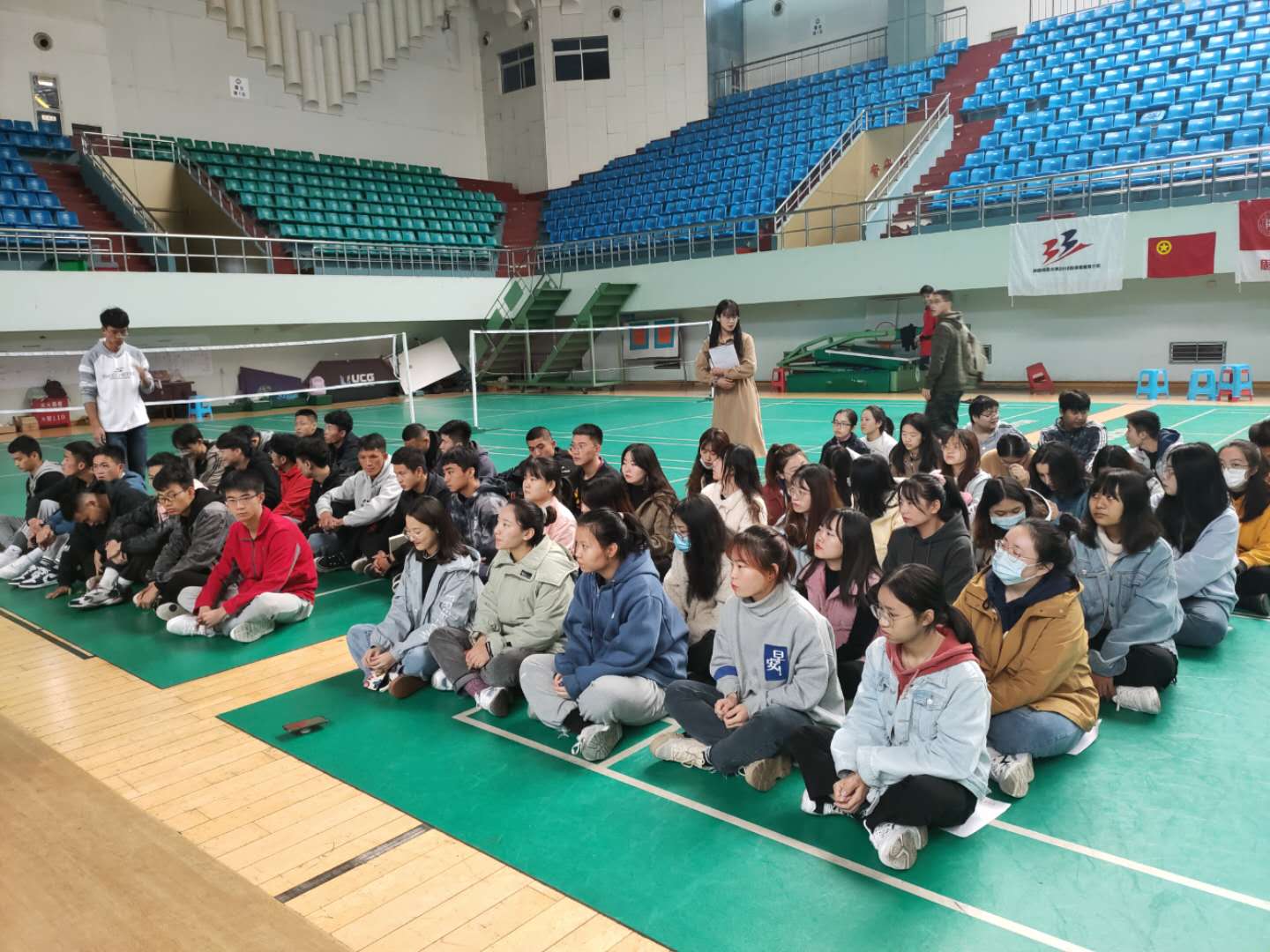 为深入学习领会习近平总书记在全国教育大会上提出的“五育并举”全面发展的内涵,增强未来教师对于学校体育教育中需要融入思想政治教育的认识,交流日常学习实践中关于思想政治教育以及体育教育的经验,马克思主义学院2018级思想政治教育二班团支部联合体育学院体教三班团支部于2020年10月28日下午在上林体育馆开展“高校体育课程育人的思想政治教育探究”主题团日活动。本次活动由团支部书记武花妮和张保安主持,马克思主义学院2018级本科生思想政治教育二班团支部及体育学院2018级体教三班团支部全体团员共同参与。