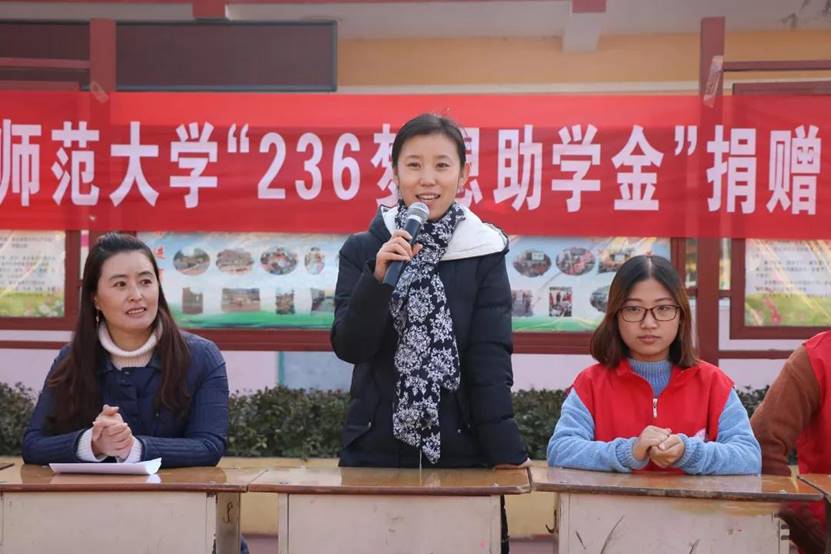236指导老师岳文慧简要介绍了236的发展历程和此次活动的意义。她说到,236这次还带来300余册图书,用于“梦想书屋”图书的更新,助孩子们实现读书梦、成长梦、成才梦。岳老师与张凤霞校长一起将助学金发放到孩子们的手中。