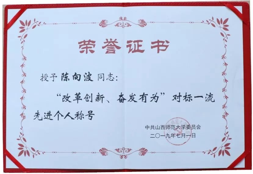 2019年7月1日上午8:30,山西师范大学庆祝建党98周年暨“七一”表彰大会在文化活动中心举行,我院基层党建工作获得多项荣誉。院党委荣获先进基层党委(全校共7个);院学生236党支部荣获先进基层党支部(全校共15个);陈向波荣获“改革创新、奋发有为”对标一流先进个人(全校共16人);李俊生荣获“优秀双带头人”(全校共13人);王玮荣获“优秀党务工作者”(全校共35人);卫永霞、岳文慧、程留永3人荣获“优秀共产党员”(全校共102人),这些荣誉的取得是对我院党建工作的充分肯定。