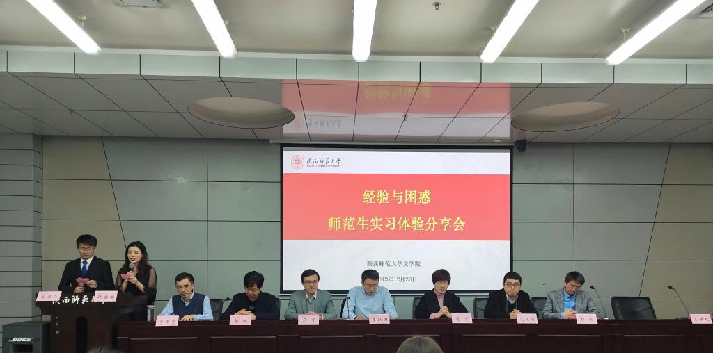 12月26日下午,文学院在长安校区图书馆报告厅成功举办了“经验与困惑:师范生实习体验分享会”。我院张鹏、徐海青、谭茂翠、闫淑琴、吴国颖五名同学的分享题目,经过前期申报,专家评审,最后成功入选了此次分享会。我院特邀西铁一中高级教师、教务副主任、陕西省学科带头人、教学能手马宁老师,西北工业大学附属中学、陕西省语文学科骨干、陕西师范大学校外硕士生导师梁斌老师,西安高新一中高级教师、陕西省教学能手、西安市学科带头人高阿超老师,教育部“国培”计划讲师、第四届全国说课大赛特等奖、《华商报》作文大讲堂特聘讲师郭凯老师,陕西师范大学文学院讲师、教育学博士、中国语言文学博士后、教育硕士导师李军亮老师作为分享会对话嘉宾,我院副院长李跃力,党委副书记李斐出席了此次交流会,会议由汉语言文学一班张茹茹和汉语言文学三班陶路江同学主持。