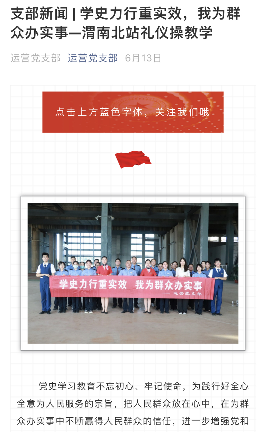 “学史力行重实效,我为群众办实事”—渭南北站礼仪操教学