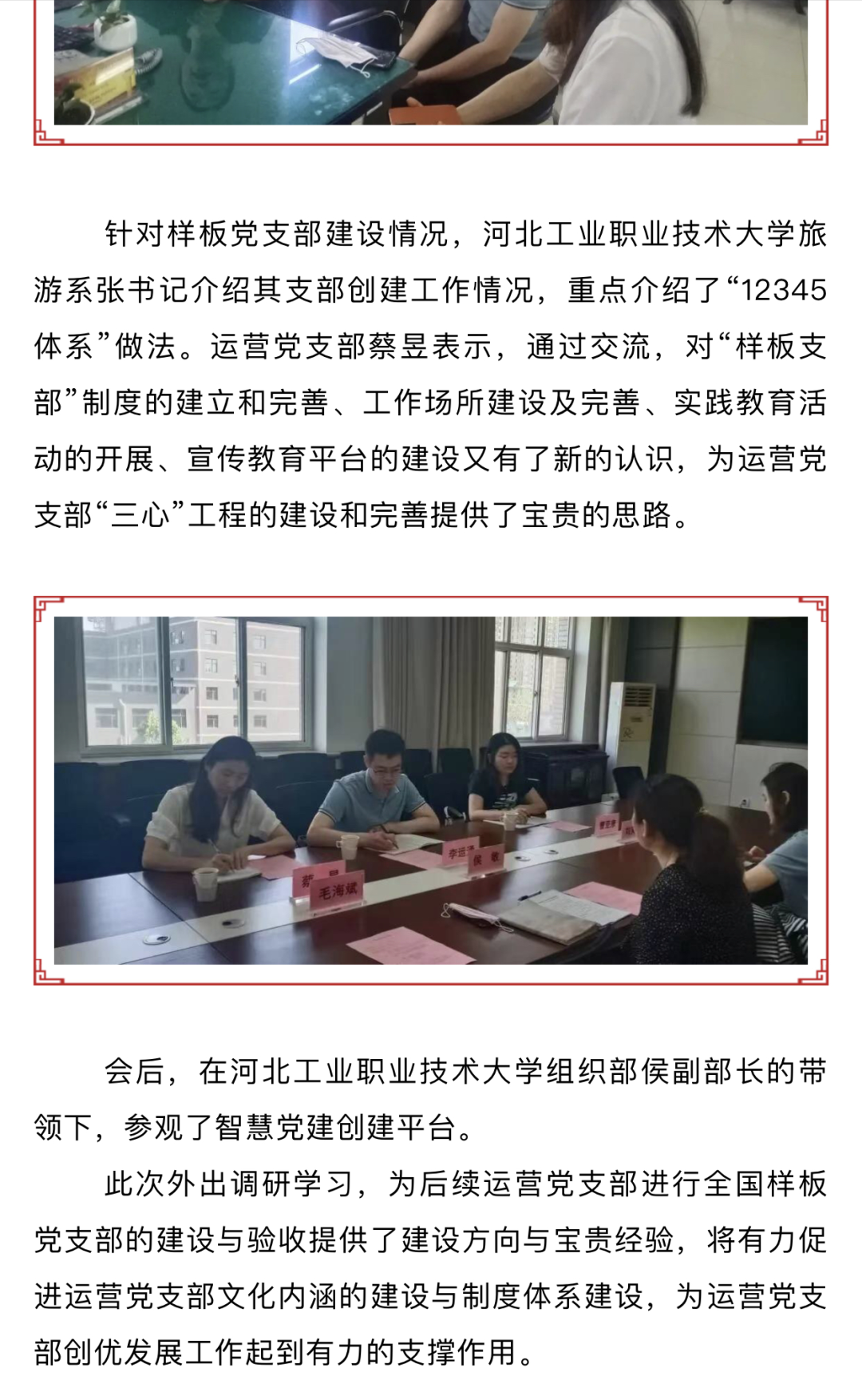 此次外出调研学习,为后续运营党支部进行全国样板党支部的建设与验收提供了建设方向与宝贵经验,将有力促进运营党支部文化内涵的建设与制度体系建设,为运营党支部创优发展工作起到有力的支撑作用。