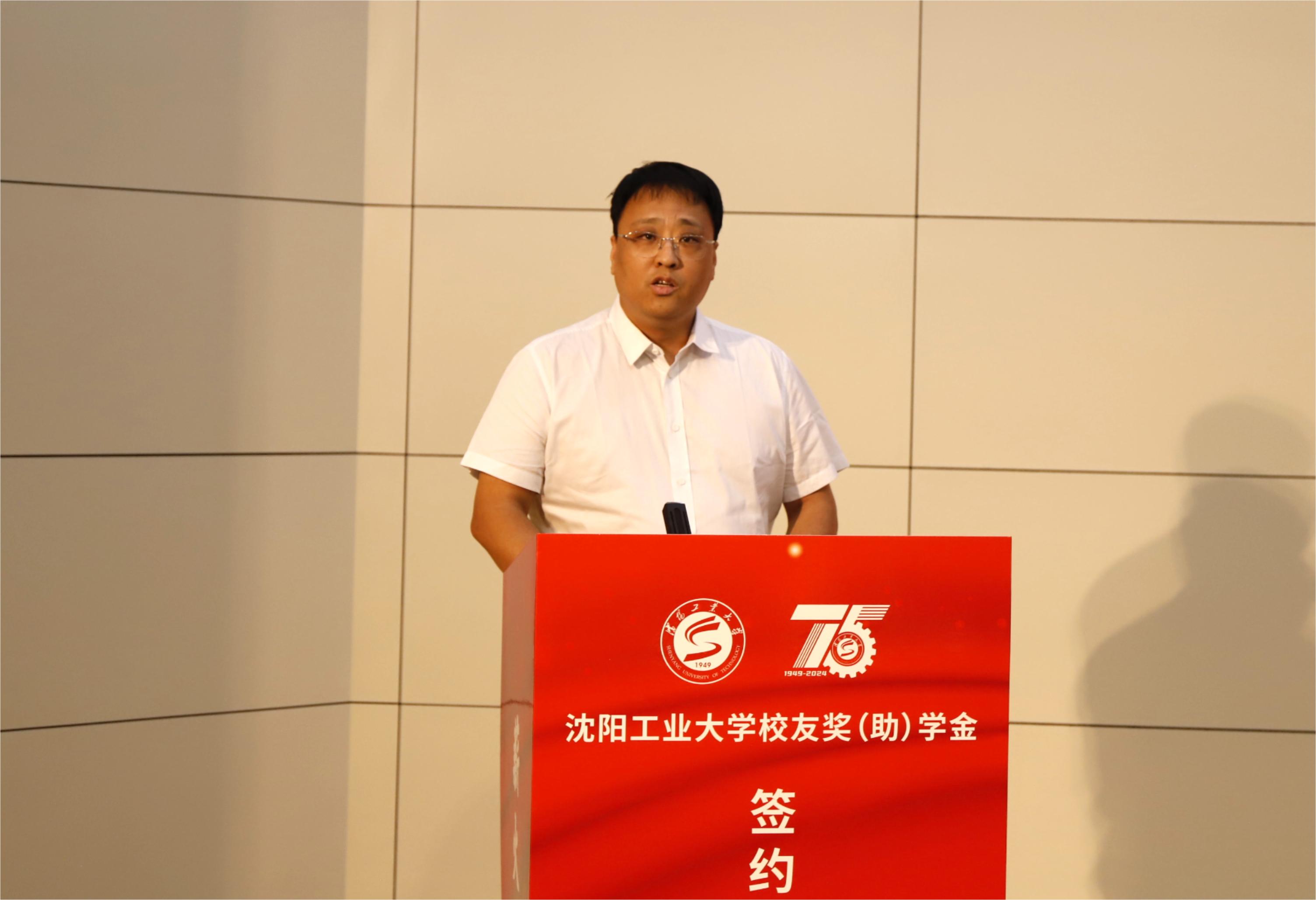 沈阳工业大学“四家”奖学金、沈阳工业大学“宝菊”创新基金、电气工程学院“文化基金”、信息学院“泽信·薪火”基金、文法学院“宝菊”校友基金五项奖学金的校友企业、校友代表与校方代表依次签约,泽信·雏鹰基金捐赠人郭巍发来庆贺视频。