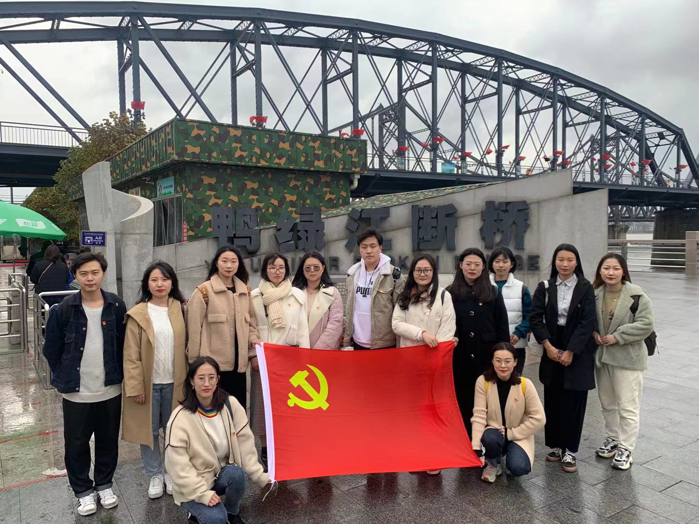 下午,党员同志们来到了鸭绿江断桥。1905年,日本侵略者为掠夺中国,强行在鸭绿江上修建了这座大桥,在抗美援朝战争期间,两座鸭绿江大桥成为中国支援朝鲜前线的交通大动脉,断桥仿佛是一位屹立江中的历史老人,凭吊和铭记着中国人民志愿军的英雄业迹。现在,鸭绿江断桥是全国重点爱国主义教育示范基地,桥上遗留的累累弹痕和桥头飞翔的群群白鸽,把战争与和平两个不同的画面同时呈现在党员同志面前,令人深受教育。