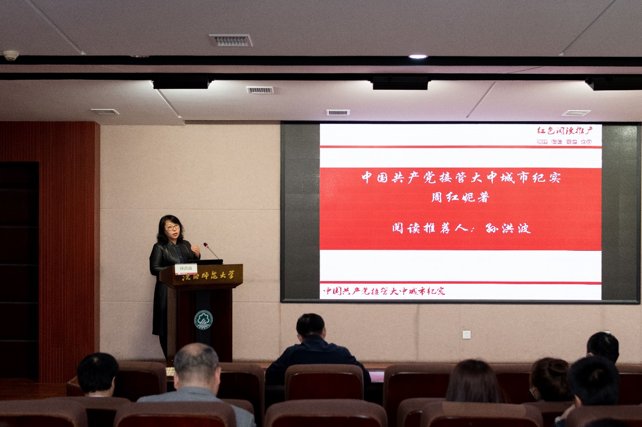 为深入贯彻落实习近平总书记在党史学习教育动员大会上的重要讲话精神,根据图书馆党史学习教育安排,4月28日上午,图书馆党总支邀请沈阳师范大学红色阅读推广人、马克思主义学院孙洪波老师以《中国共产党接管大中城市纪实》著作导读为主要内容,为图书馆和后勤集团全体党员上了一堂专题党课。活动由图书馆第二党支部书记丁学淑主持。