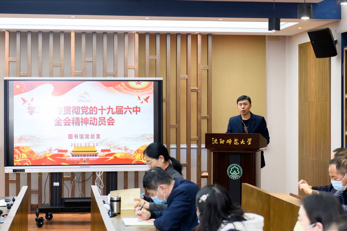 图书馆副馆长王磊传达《沈阳师范大学学习宣传贯彻党的十九届六中全会精神工作方案》精神