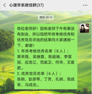 会后党支部通过微信形式向全体党员通报测评结果。
