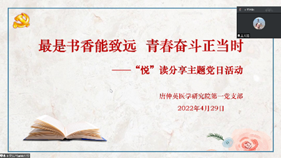 草长莺飞四月天,正是读书好时节。为深入贯彻习近平总书记关于读书学习的重要论述精神,推进学习型基层党组织建设,营造书香环境迎接“五四”青年节,4月29日下午,唐仲英医学研究院第一党支部以腾讯会议线上形式开展了“最是书香能致远,青春奋斗正当时”的悦读分享主题党日活动。活动由唐仲英一支部书记王文洁主持,支部全体党员参与了本次活动分享。