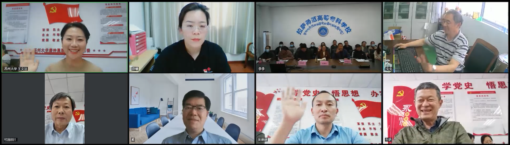 5月19日下午,教育部第三批“全国党建工作样板支部”唐仲英医学院研究院第一党支部(以下简称“唐仲英一支部”)与苏州大学对口支援藏区高校拉萨师范高等专科学校数学和自然科学系教工党支部(以下简称“数科系教工支部”)以线下结合线上会议形式,开展结对共建主题党日活动“党建引领八千里联学,再续生地熟地铜锌缘”。主题以中药名“生地、熟地”代指苏州大学苏州医学院,以自然元素“铜锌”代表数科系,表达两校间源远流长的援建情谊。