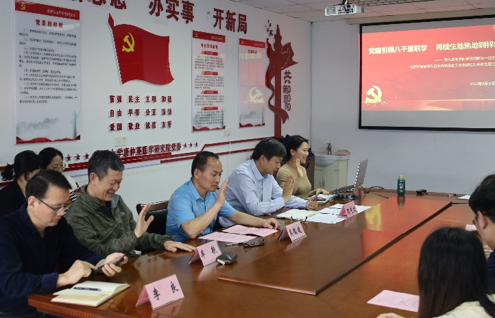 王文洁代表唐仲英一支部做“打造高校科研机构双循环系统党支部”工作法汇报交流。立足血液学科特色和高校科研机构实际,在实践中创新运用“双循环系统”特色工作法:不忘初心、始终以祖国的需要为指向激发原动力,以老一辈血液学家“烛缸精神”为指引;练好功夫、实干担当,提质“体循环”以凝聚向心力;辐射引领、凝聚青年,增效“肺循环”以确保续航力。坚持与时俱进,创建并擦亮“格桑花红”工作品牌,催生战斗力。结合具体工作,支部凝练概括组织生活“八段锦”,包括心法三式、基本功三式以及与时俱进两式,形成“严肃、活泼、团结、紧张”的局面。在随后交流发言中,唐仲英医学研究院第二党支部组织委员杨雪和第三党支部纪检委员霍建一表示在唐仲英一支部示范引领下,将积极探索适合自身的支部工作法,加强组织建设,凝聚党员力量,提高服务社会和人民的能力。