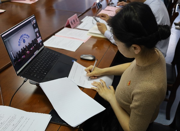 张越友在讲话中感谢唐仲英医学研究院提供了全面学习党建和业务工作的机会。对于“双循环系统”工作法深有感触,将思考并结合数科系教学科研中的优势与不足,聚焦政治引领、融合发展。坚持问题导向、实践导向、产出导向,接外力练内功,以共建促党建、促发展、促育人,相信在苏州大学党建专家、学科专业专家的指导和帮助下,通过虚拟教研室平台深入指导数科系相关工作,将在对口支援的组团院校内发挥示范引领作用。并再次对迮玉官援藏两年、车轶编写师专教材、戈志强指导数科系专业认证等工作的辛勤付出表达衷心的感谢。