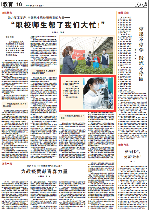 [人民日报]助力复工复产,全国职业院校积极贡献力量—— “职校师生帮了我们大忙!”