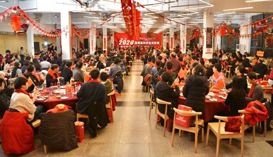 1月17日是农历“小年”,当天同济校园里洋溢着浓浓的年味,四平路校区学苑饮食广场、中法中心张灯结彩,一派喜气洋洋的景象,校领导方守恩、陈杰、伍江、徐建平、吴广明、方平、雷星晖等与寒假留校学生500余人欢聚一堂,同吃年夜饭,共迎新春佳节。