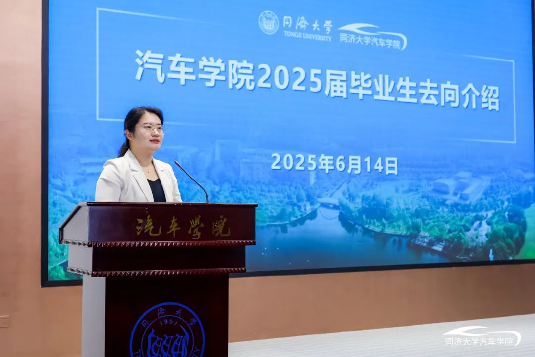 葛畅介绍了本届毕业生的去向情况,祝福同学们于道各努力、千里自同风,在未来的人生中不断奋斗、实现理想抱负,并代表学院校友分会欢迎2025届汽车人常回母校看看。