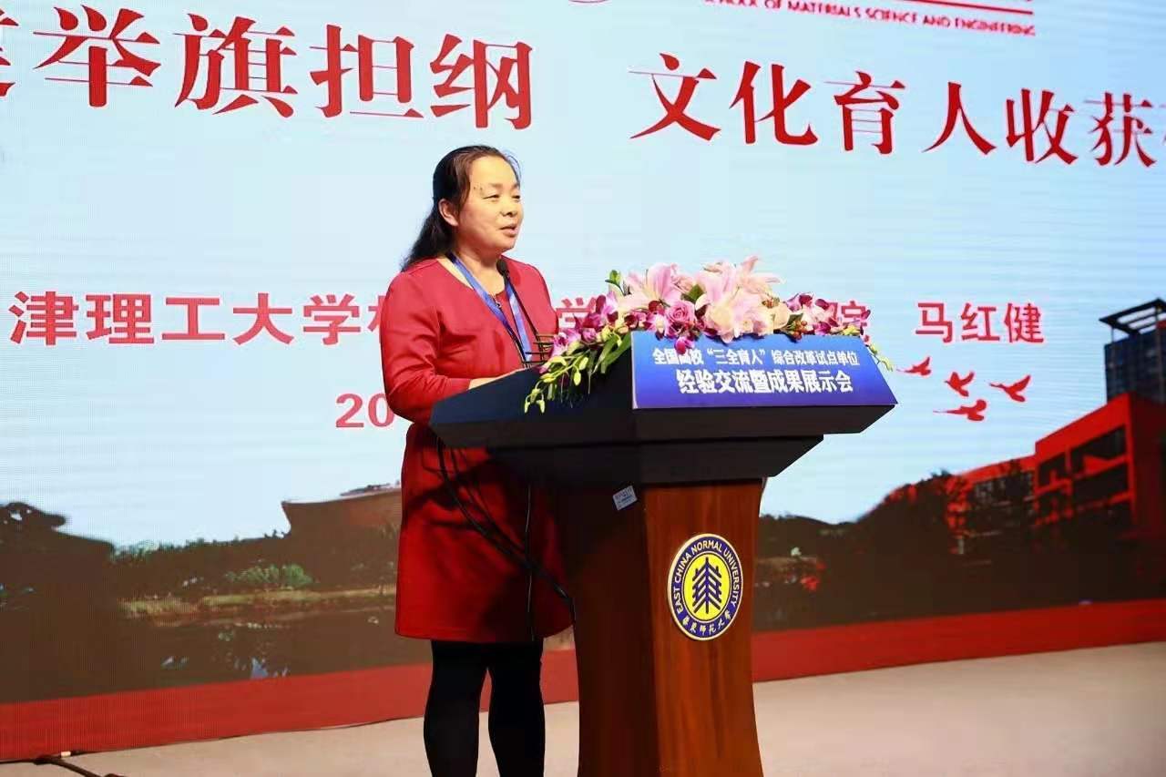交流会上,21名来自各“三全育人”综合改革试点单位的嘉宾分别围绕“课程思政”“活动育人”“机制建设”介绍所在单位“三全育人”的工作经验,彼此碰撞思维,启迪思考。我校材料科学与工程学院党委书记马红健以《党建团建举旗担纲 文化育人收获硕果》为主题,介绍了天津理工大学在“三全育人”尤其是文化育人方面的有效做法和取得的成果,进一步推广展示了新生适应性教育、红色文化基因传承载体、“分享会”主题团课模式等学院思政工作特色品牌,得到了与会嘉宾的关注。