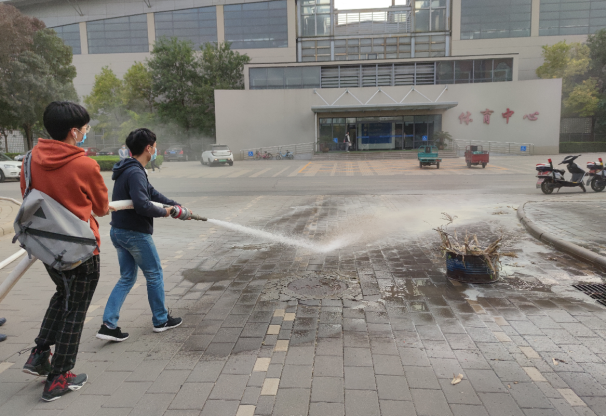 刘博洋老师结合参加消防险情处理的亲身经历及近年来高校不同类型安全事故案例阐明了高校消防安全的重要意义,深入分析了校园消防险情发生原因,要求大家严格遵守上级关于安全生产及安全管理的各项规定,做到安全科研、安全生活、安全求救。安全教育后,石老师对灭火器及高压水枪的使用规范进行详细讲解并亲自示范操作,2020级研究生有序开展了消防演习。