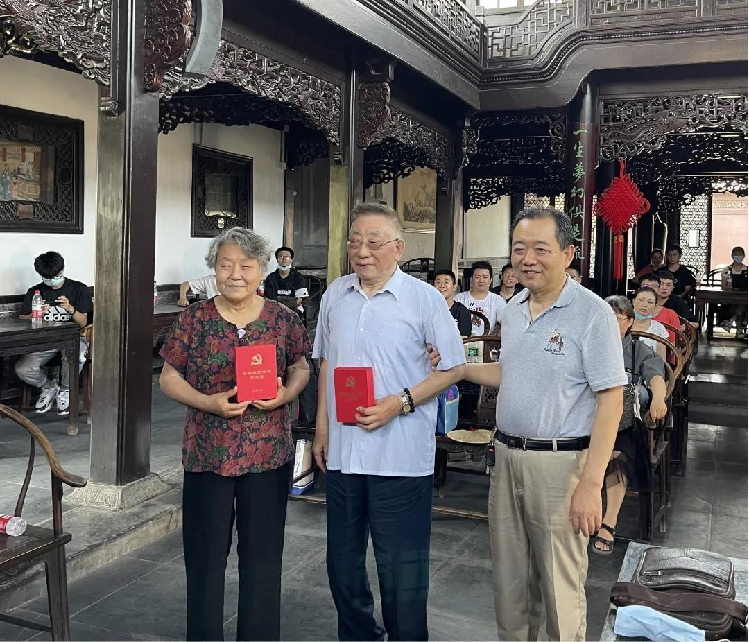 党课结束后,学院党委委员吕联荣为徐宝强、刘建民两位老党员颁发“光荣在党五十年”纪念章并合影留念,向他们表示祝贺并致以崇高的敬意,沉甸甸的纪念章展示着党组织对老党员的关心,更是对他们兢兢业业工作的肯定。