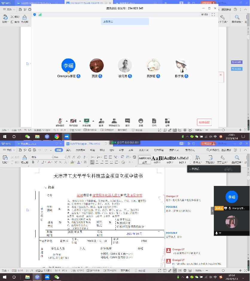 在指导过程中,支部党员教师建立师生联动、互进互促的科研团队模式,通过腾讯会议的方式对每一份项目书严格把关、字斟句酌、精益求精。首先,指导教师以自己多年的科研经验,解答每位学生在选题、定题方面的疑惑,根据学生描述的研究想法给予学生最精准的选题建议。其次,在开题报告的撰写方面,指导老师严谨耐心,定期召开的指导会议,对学生每一稿的开题报告仔细审阅,并详加批注。大到研究框架、思路逻辑的指点,小到专业用词、报告格式的修正,老师们对学生们提交的每一份开题报告都力求完美。