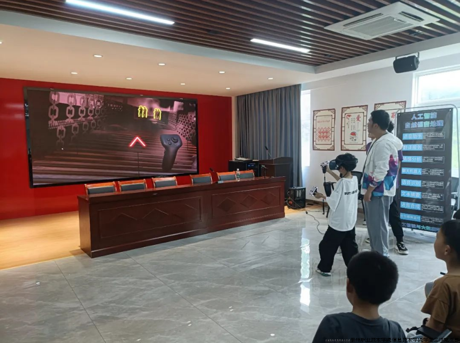 活动伊始,智数院蔡老师通过播放AI宣传片让孩子们对人工智能有个初步认识,随后介绍了人工智能的基本概念、发展历程及实际应用,并设置了“AI知识问答”等讨论环节,让孩子们在轻松愉快的氛围中交流思想、碰撞智慧。随后,志愿者指导孩子们戴上VR眼镜,在沉浸式的体验中探索未知的领域,感受科技带来的无限可能。在“AI智慧人像拍摄”环节,孩子们则利用AI技术生成自己的照片,进一步感受到了科技的神奇魅力。
