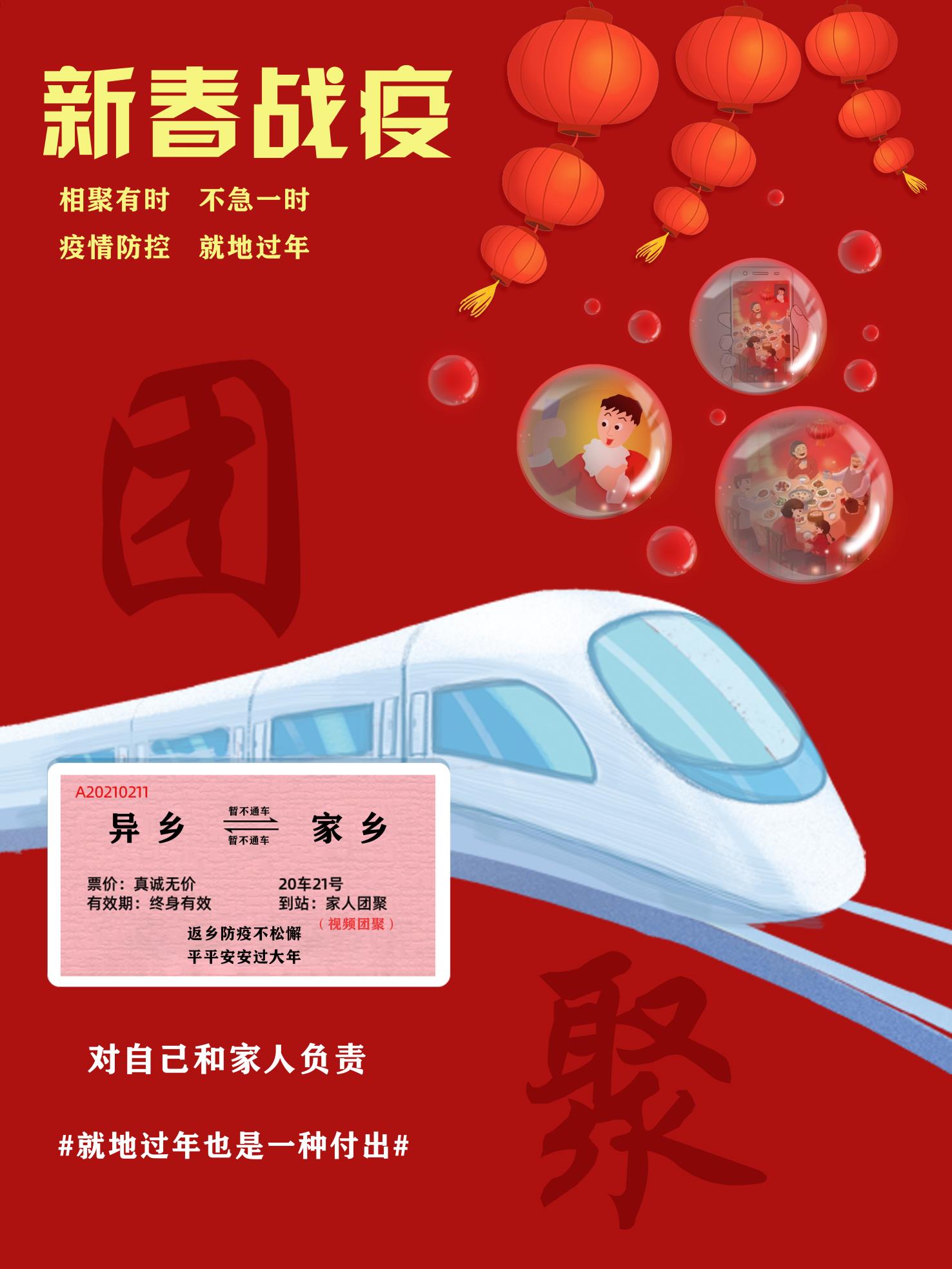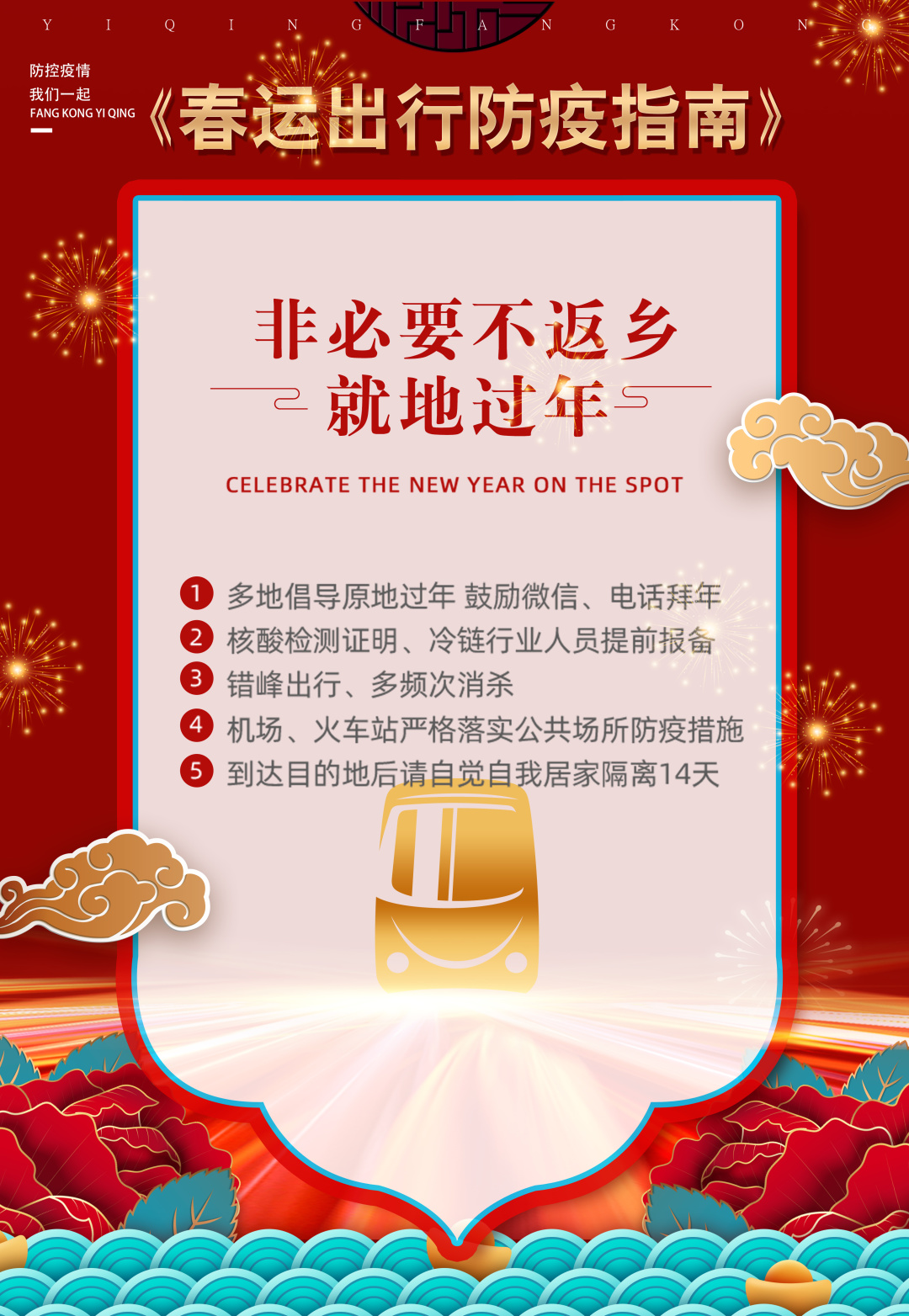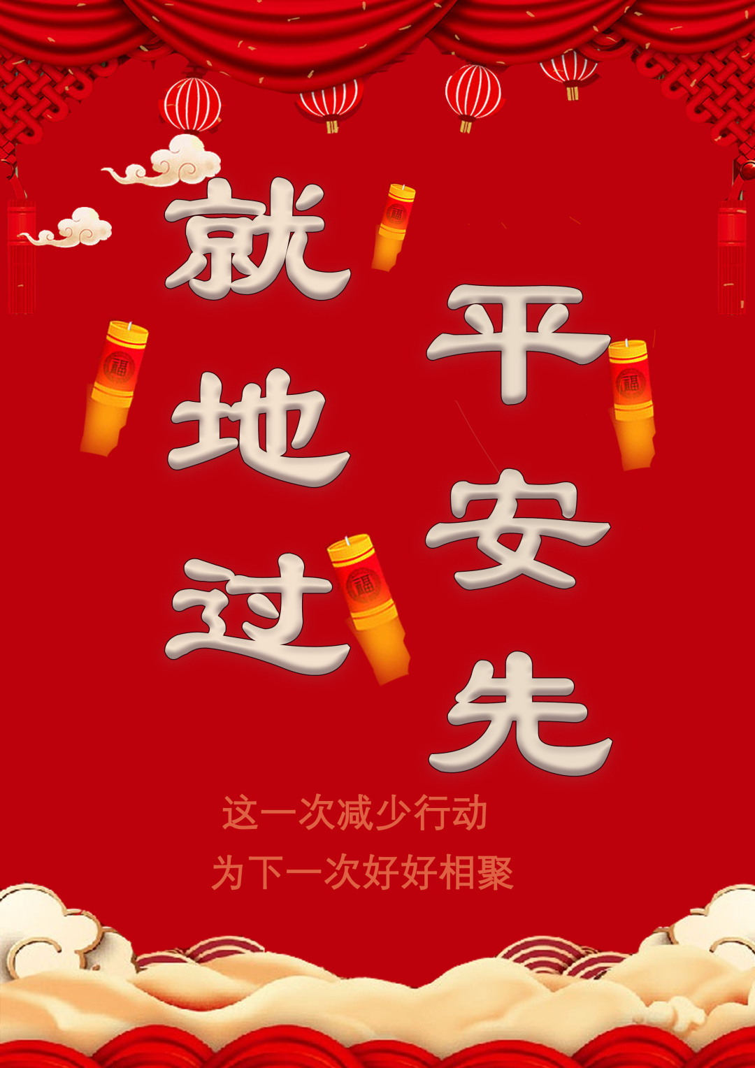 疫情的阴霾从去年笼罩到现在,2020年,全国人民在以习近平同志为核心的党中央的坚强领导下,我们取得了新冠肺炎疫情的阶段性胜利和重大成果!而今,随着传统节日春节的到来,春运节奏的开启,疫情防控形势依然不能松懈!各地政府、企业响应国家号召,倡议工作地过年、就地过年,以实际行动保护自己,防护家人。疫情防控,人人有责,我们期待2021疫霾散去,春暖花开,家人团聚和谐幸福!