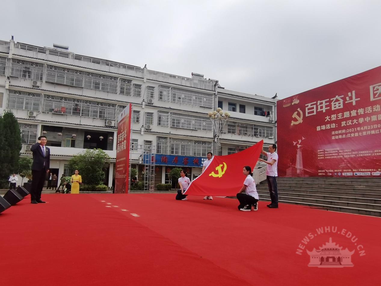 “党的光辉照我心……”4月23日,红安县七里坪镇“中国工农红军第四方面军诞生地”纪念碑广场上空回荡着嘹亮红歌。由中共湖北省委宣传部指导、湖北省卫生健康委主办、武汉大学中南医院承办的“百年奋斗 医心向党——走进红色大别山”活动在这里举行。长江云对活动进行了现场直播,观众超过24万人次。