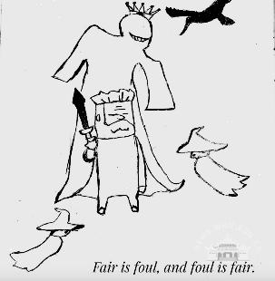 为了让学生在非密切授课状态下,实现个体心灵的交流与快意思维的碰撞,学生在课前绘制海报,用华丽的色彩、形状与线条将自身对莎剧的理解与情绪展现出来。王雨箫同学以塔罗牌为主题凸显命运的多变,绘制了《李尔王》的海报;遥感信息工程学院的姜广为同学设计的《麦克白》海报被老师和同学称“已有电影大片的质感。”