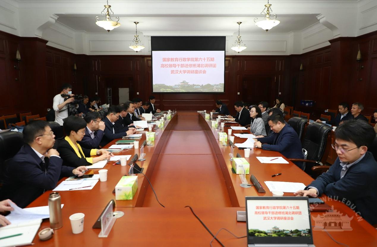 4月16日,国家教育行政学院第六十五期高校领导干部进修班湖北调研团一行来校调研,就高校发展建设工作进行交流,副校长吴平出席调研座谈会。