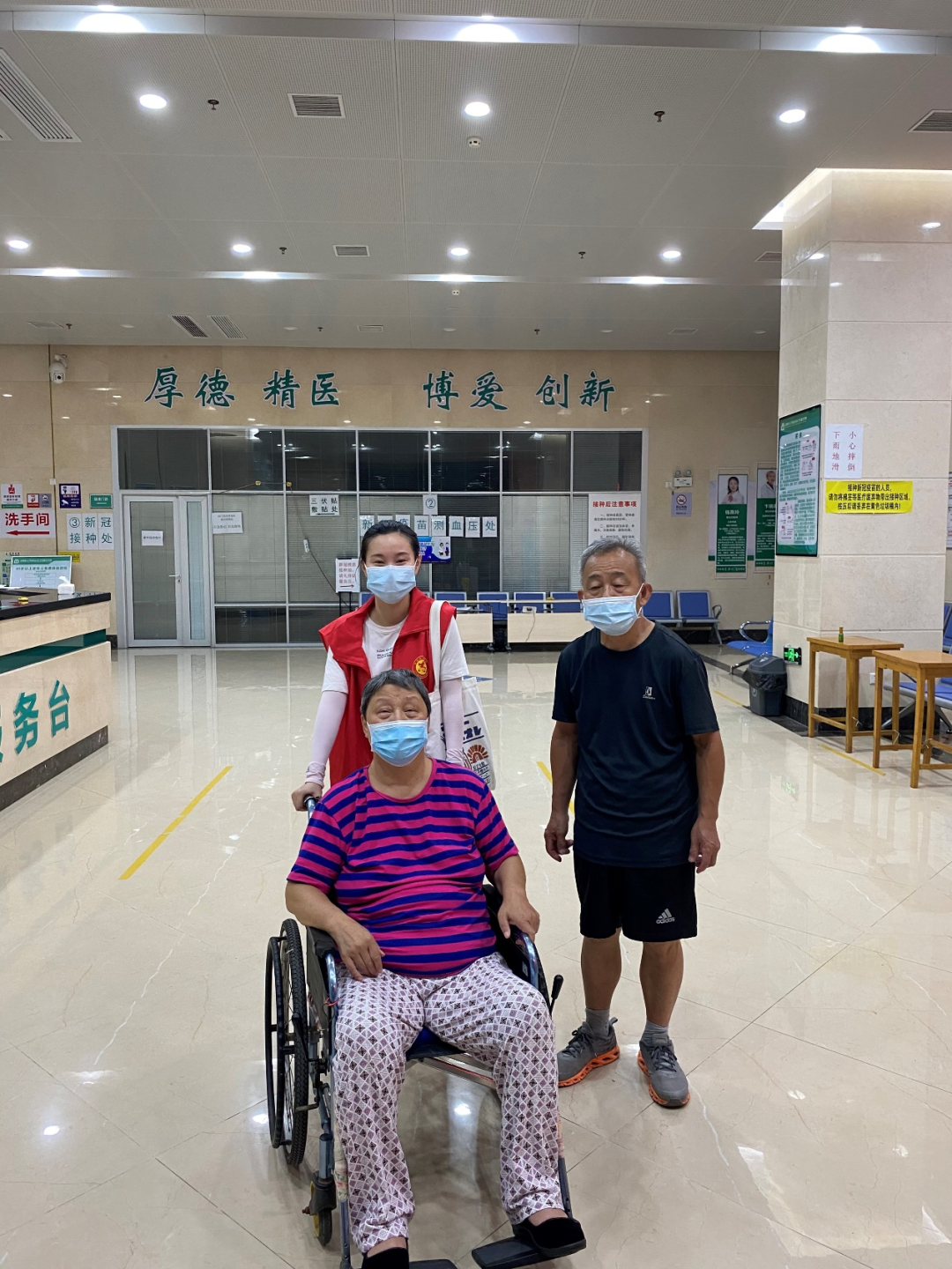 8月6号,金琼老师下沉到五里墩街道五麒里社区,负责上门宣传核酸检测最后的时间、地点,让居民做到应测尽测。当来到两位空巢老人的家中,她发现一位老人刚手术不久卧床修养,最近天热,两老没出门,不知道核酸检测事宜。而这时已是晚上7点多,离核酸结束检测时间所剩不多,导航显示步行需19分钟,她担心两老自行前去,赶不上检测时间。她便与社区书记联络,确定不能提供上门检测且检测时间无法延后,便推着老人坐的轮椅迅速前行,三人在19:47分时赶到,可此时检测点已撤离。考虑到两老来出门一趟很不容易,她又赶忙和社区、卫生院进行沟通,商定二老在卫生院进行核酸检测。整个过程一波多折,但总算协助二老完成了检测。检测结束后,她将二老送回家中,二老连声感谢。