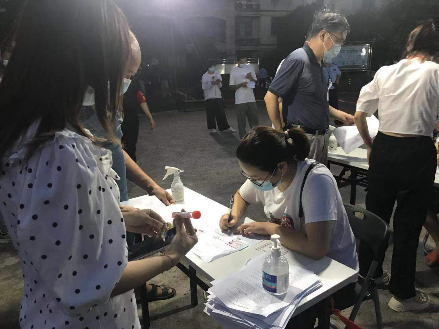 2021年8月5日19时,江夏区银河湾小区篮球场,小区全员核酸检测开始了。