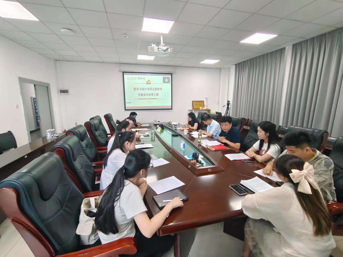 据悉,数学与统计学院主题教育读书班为期七天,每期一天,半天自学,半天集中学习研讨。通过自学、导学、研讨等多种形式,分阶段有计划地完成辅导书目的通读,全面系统把握思想精髓,结合调查研究,融会贯通领悟,凝练学习成果,突出学以致用,以学铸魂、以学增智、以学正风、以学促干,切实把学习成果转化为推动学院事业高质量发展的强劲动力。