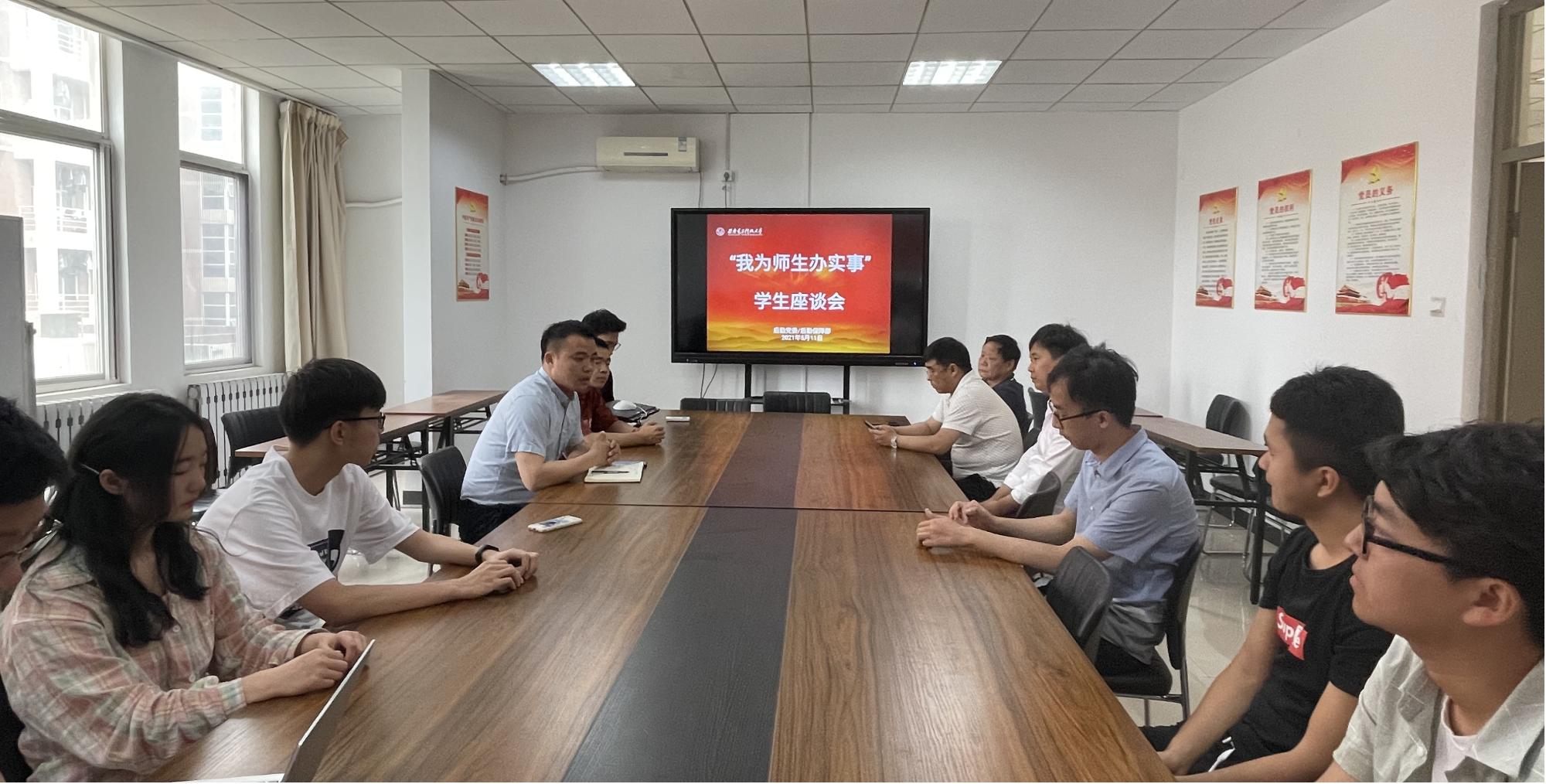 通过座谈会,不仅更好地了解了学生的诉求,还迅速拉近了师生之间的距离。黄成龙表示,非常感谢同学们提出的宝贵意见,后勤将坚持把党史学习教育同为师生解决“急难愁盼”问题相结合,始终坚持以学生为中心,强化一线调研,对标需求解决好同学们“急难愁盼”的实际困难,努力创设更好的学习生活条件和饮食保障,共同推进文明、和谐校园建设,切实提升同学们的获得感、幸福感。