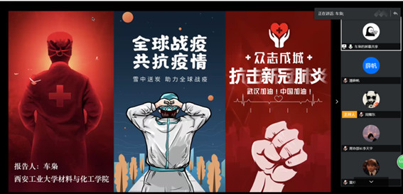 面对这场前所未有的疫情防控斗争,材化学院多层次、多形式地积极开展“共抗疫情、爱国力行”主题宣传教育活动,通过齐心助力、学习理论、分享经验、讲好故事等方式,深入推广爱国主义教育,引导学生做防控疫情的坚定拥护者、停课不停学的坚定落实者,为坚决打赢疫情防控阻击战树立坚定信心 。