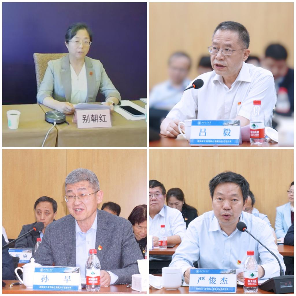 与会的部分中心组成员作重点发言。党委常委、常务副校长别朝红表示,要深入学习贯彻党的二十大精神,对标对表党的二十大对教育、科技、人才的“三位一体”统筹安排、一体部署,在教学科研、社会服务、文化传承、国际交流等方面真抓实干,谋实招、求实效。党委常委、副校长吕毅表示,习近平总书记将“面向人民生命健康”列为“四个面向”之一,充分体现了党中央对卫生健康事业的重视,要加快医学攻关产教融合创新平台建设,推动医工交叉,作出医学人的卓越贡献。党委副书记孙早表示,要深入贯彻教育、科技、人才“三位一体”协同发展,推动产学研深度融合服务发展新质生产力,同时紧抓教师思想政治和师德师风建设,为服务新质生产力发展提供强有力的人才支撑。党委常委、副校长严俊杰表示,要深刻认识教育、科技、人才一体推进的重要意义,始终坚持把人才强校作为核心战略,强化组织推进,以国家战略需求为牵引、开辟新领域新赛道,服务新质生产力加快发展。