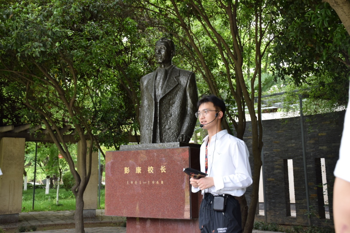 来到东花园彭康校长雕像前,李科介绍了彭康校长的生平、交大西迁的历史背景以及彭康的重要角色担当,并通过几个故事生动讲述了彭康在求学、牢狱、西迁和主政西安交大期间的革命事迹和育人思想,指出西迁精神是以彭康校长为首的老一辈西迁人的血汗铸就的,是他们经历的真实写照,是他们没有宣之于口却为之奋斗一生的精神。