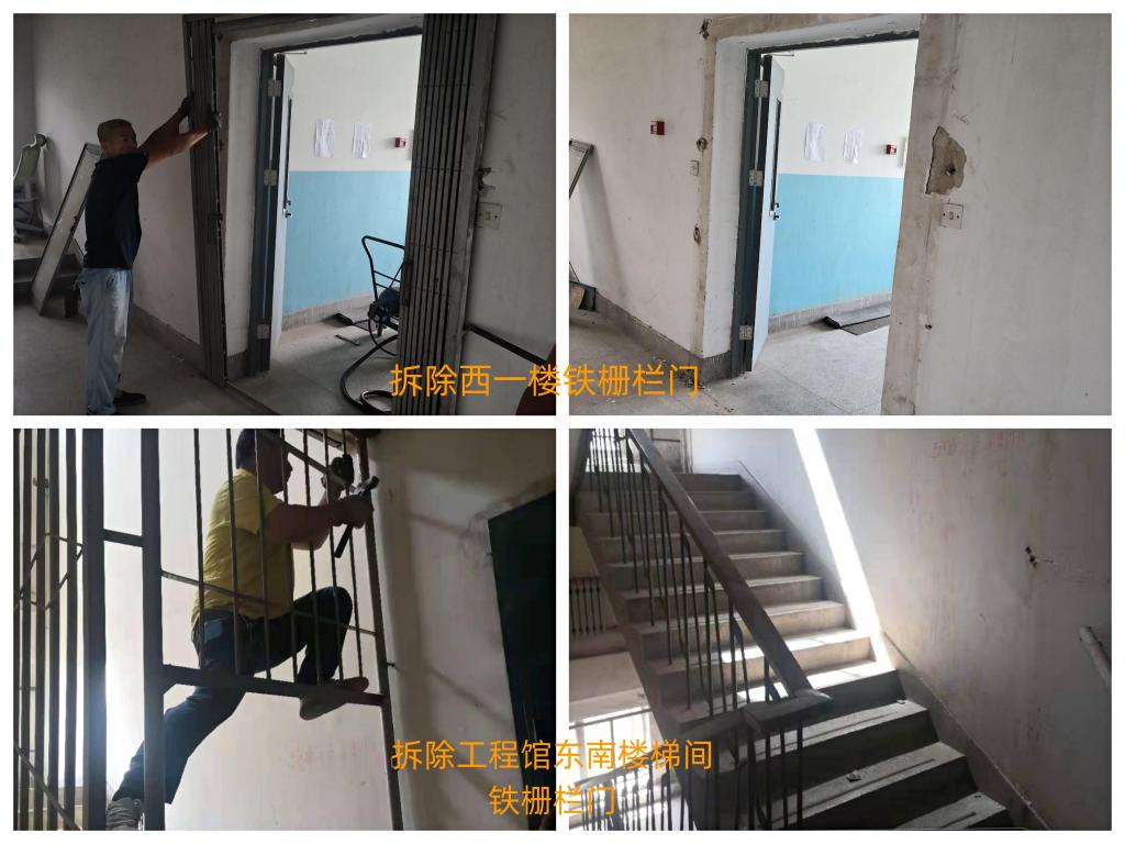 针对以上情况,保卫处联合实验室与资产管理处、后勤保障部等有关单位,推动各系所妥善归置大型仪器设备和相关资产,对阻碍安全逃生的门禁予以拆除,对阻塞消防通道的已报废物品及时回收处置,为师生打通在危急时刻与险情赛跑的“生命赛道”。