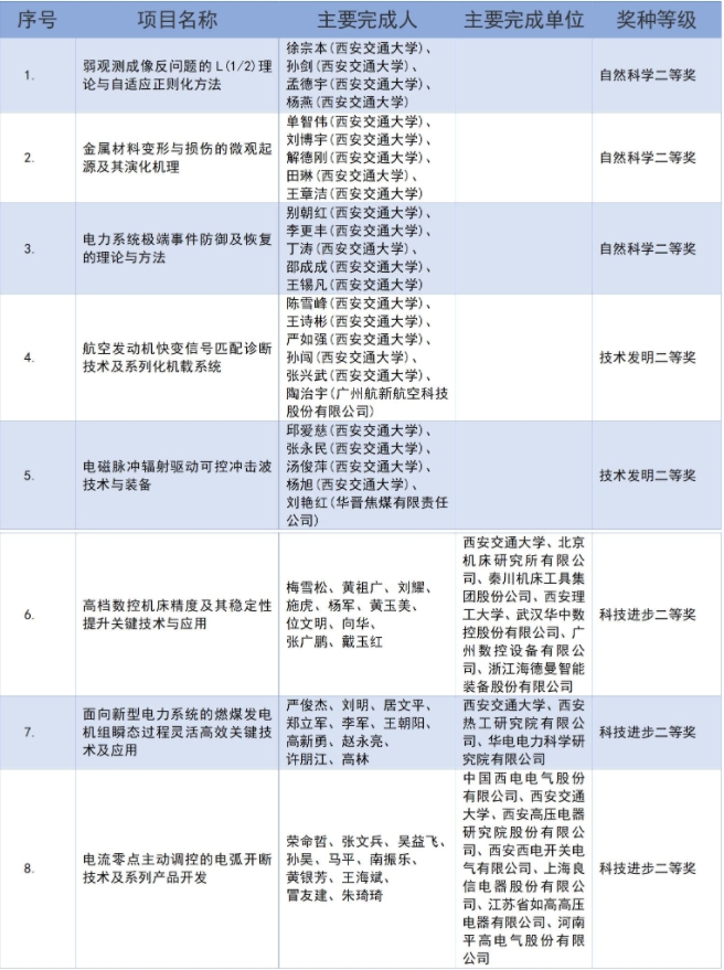 西安交大教师作为第一完成人获国家科学技术奖项目基本情况