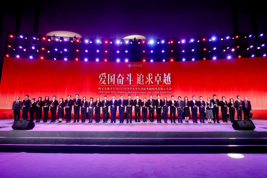 12月18日下午,西安交通大学2023-2024学年“爱国奋斗,追求卓越”学生表彰奖励暨风采展示大会在思源学生活动中心举办。西安交通大学校长、中国工程院院士张立群,陕西省人民政府征兵办公室副主任吕森大校,西安交通大学党委副书记王欢,党委常委、宣传部部长、统战部部长成进,党委常委、医学部党委书记陈腾,校长助理单文华、黄忠德,西迁老同志代表朱继洲、胡奈赛,华为技术有限公司西北区域招聘经理陈进杰,法士特集团公司党委委员张德宏,小米集团中国区陕西分公司人力资源经理鲁丹丹等出席会议。