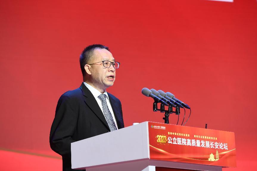 西安交通大学校长王树国在致辞中表示,今年是全面贯彻落实党的二十大精神的开局之年,开局关乎全局,起步决定后程,我们国家正处在发展历史上最关键的时期,在起始之年召开这样一次高质量发展论坛尤为重要。“健康中国”这一理念既是使命也是目标,医学界的各位同仁应该跳出自身看自身,站在国家层面、世界层面看待自身发展。在复杂的国际背景下,实现民族复兴只能靠自己,要立足人民群众健康需求,系统谋划新时期医院发展新格局,在公立医院的治理体系上实现中国式的现代化,以人民为中心的现代化。希望在今天的会议上大家畅所欲言,凝结智慧,形成共同优势,助力“健康中国”目标的实现。