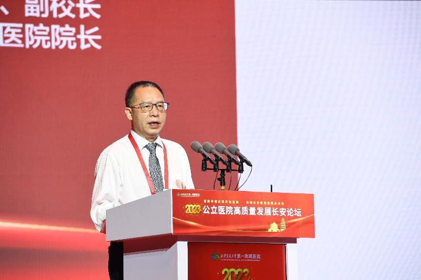 “作为实施健康中国战略的主力军,肩负的光荣使命和历史重任,我们必须加快发展,必须走高质量发展道路,这是新时代新征程的主题和呼唤。”西安交通大学副校长、医学部主任、第一附属医院院长吕毅表示。交大一附院作为国家医学中心创建单位,希望能为各位同道搭建一个学习交流的平台,凝聚一切力量,汇集群智,通过深度的思想交融与碰撞,探索新形势下公立医院高质量发展的更多可能,共同为公立医院高质量发展开出良方、贡献新策,开拓公立医院高质量前行的新路径。