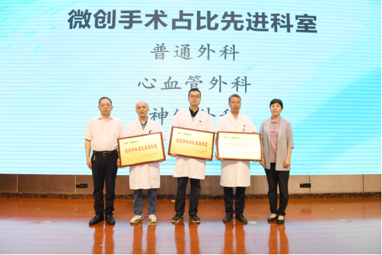 吕毅副校长、赵岚副主任为微创手术占比先进科室普通外科、心血管外科、神经外科颁奖。