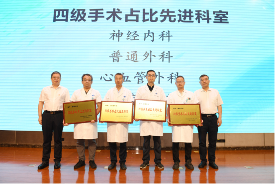 马辛格书记、王茂德常务副院长为四级手术占比先进科室神经内科、普通外科、心血管外科、肿瘤外科颁奖